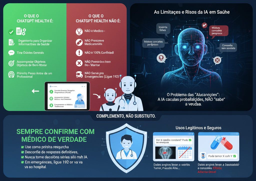 O ChatGPT Health é uma ferramenta MUITO promissora que pode realmente ajudar milhões de pessoas a cuidarem melhor da saúde. Mas como toda tecnologia, precisa ser usada da forma certa!