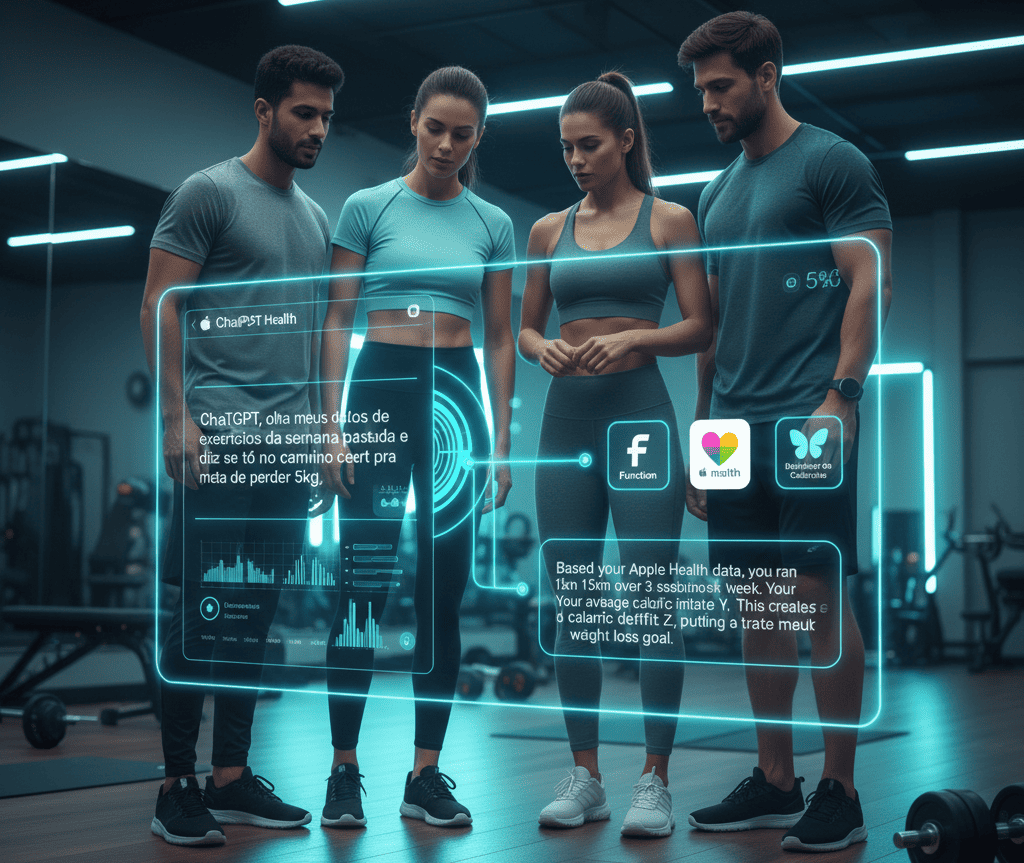ChatGPT Health: [acessa seus dados do Apple Health] “Vi aqui que você correu 3 vezes essa semana, totalizando 15km. Considerando seu gasto calórico de X e sua ingestão média de Y calorias (dados do MyFitnessPal), você tá criando um déficit de…”