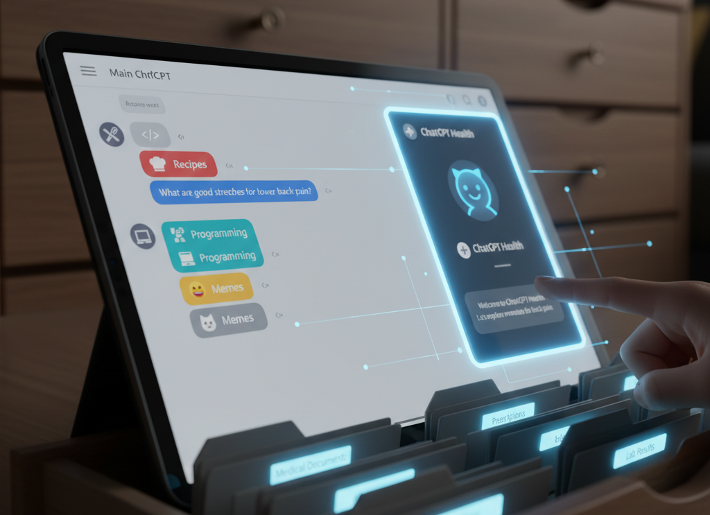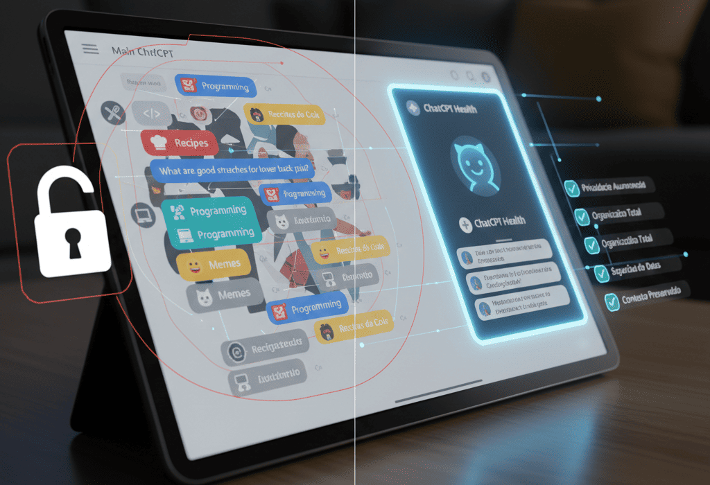 Com o ChatGPT Health, suas conversas sobre saúde ficam num espaço completamente separado. É como ter dois diários diferentes – um pra coisas gerais e outro só pra saúde.