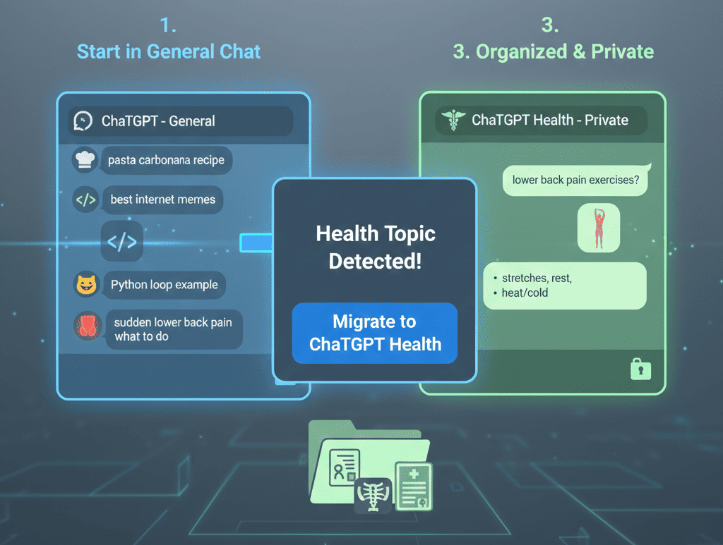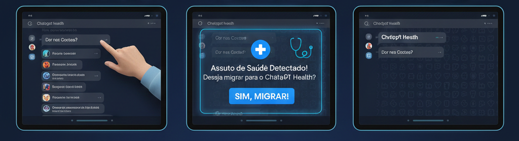 Primeiro, vamos entender o básico: o ChatGPT Health não é um ChatGPT totalmente novo e separado. É tipo uma “sala especial” dentro do ChatGPT que você já conhece, mas dedicada exclusivamente a conversas sobre saúde.
